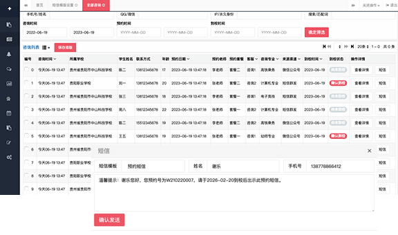 生成需要發送的短信內容,更進一步提升了咨詢的工作效率!
